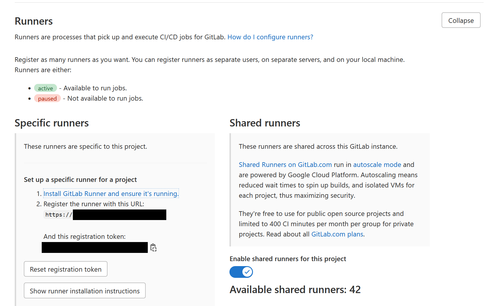 We'll automatically handle our runner registration with the GitLab server during the Docker build phase by specifying its token using variables.