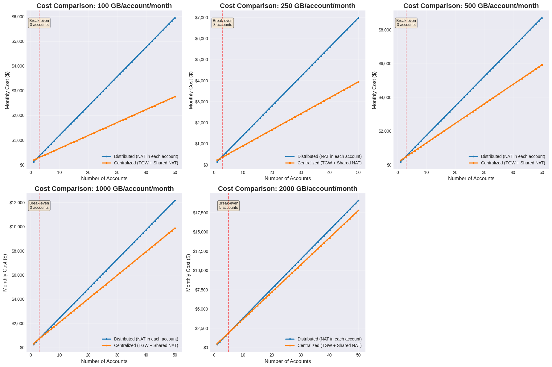 The economic analysis clearly indicates that centralizing NAT Gateways is cost-effective in most real-world scenarios, in particular: