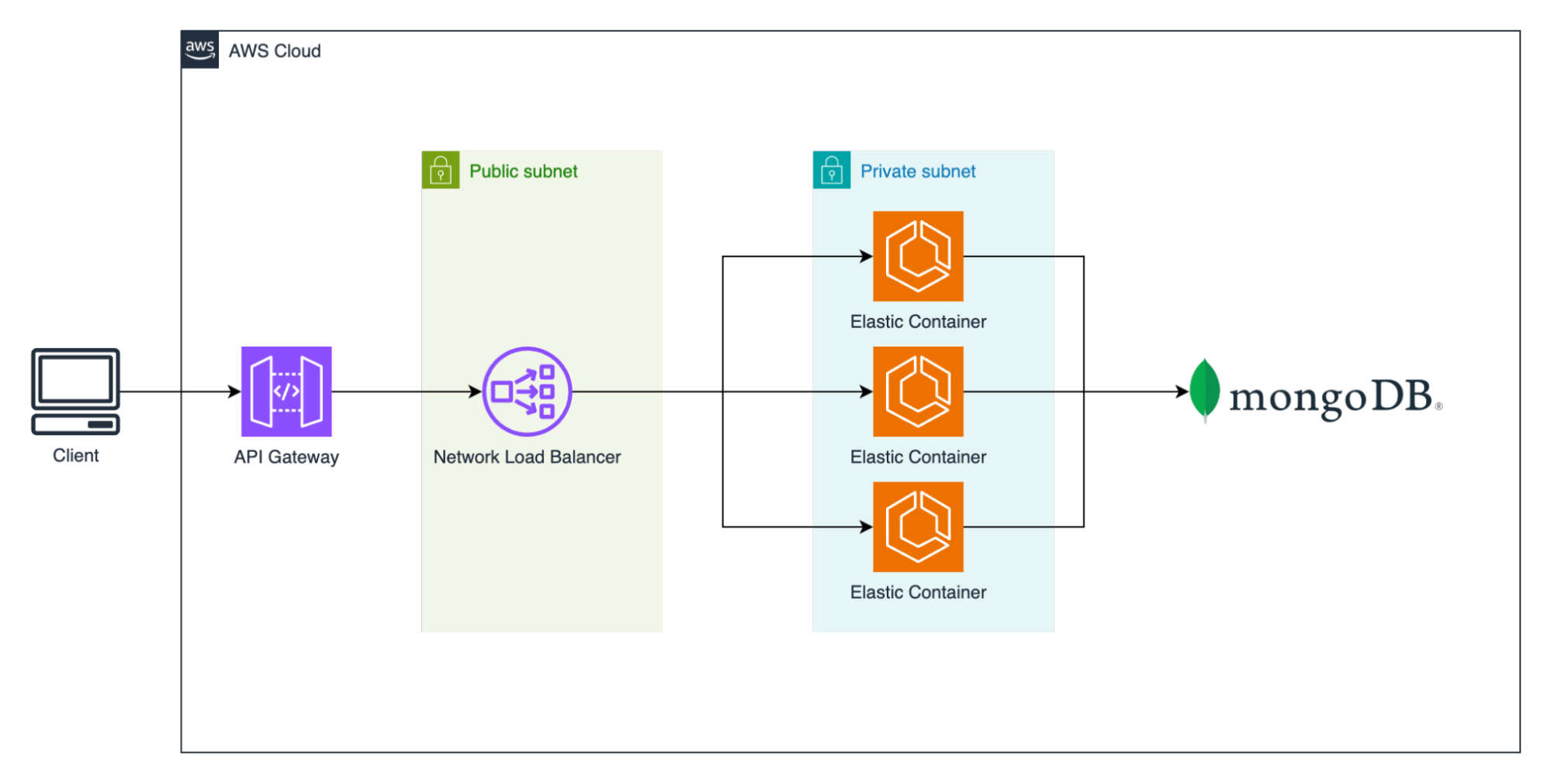 Our setup is a common AWS pattern: an AWS Application Load Balancer distributes traffic across a fleet of Amazon EC2 instances running our service. The service's main job is to query a MongoDB database and return results.