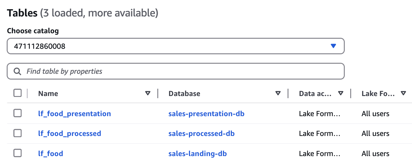 With these simple expressions, we select all databases, tables, and columns that are tagged with those LF-Tag values.
