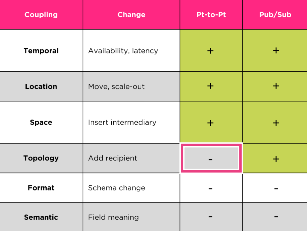Even if systems are decoupled in time and topology, they may be coupled by the structure or meaning of messages.