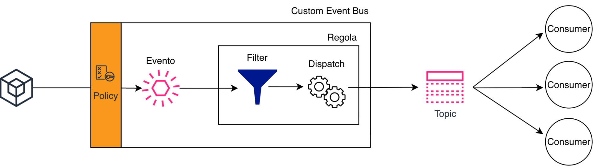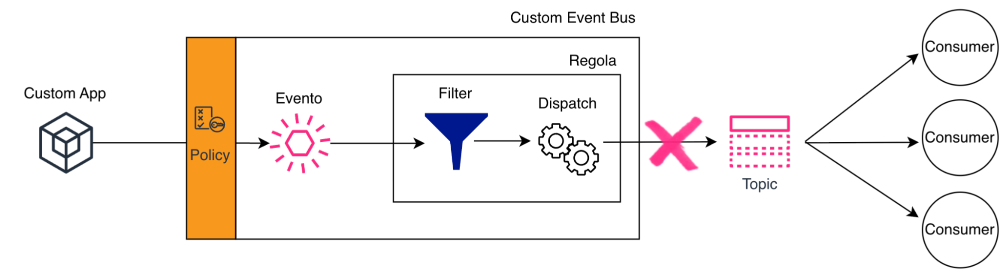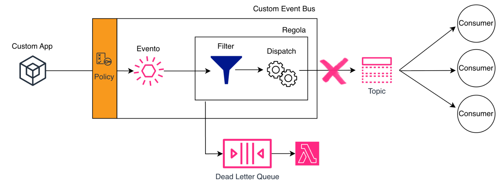 Once the event is packed into this envelope, we can send it to the custom event bus—unless something is blocking our path to the consumer…