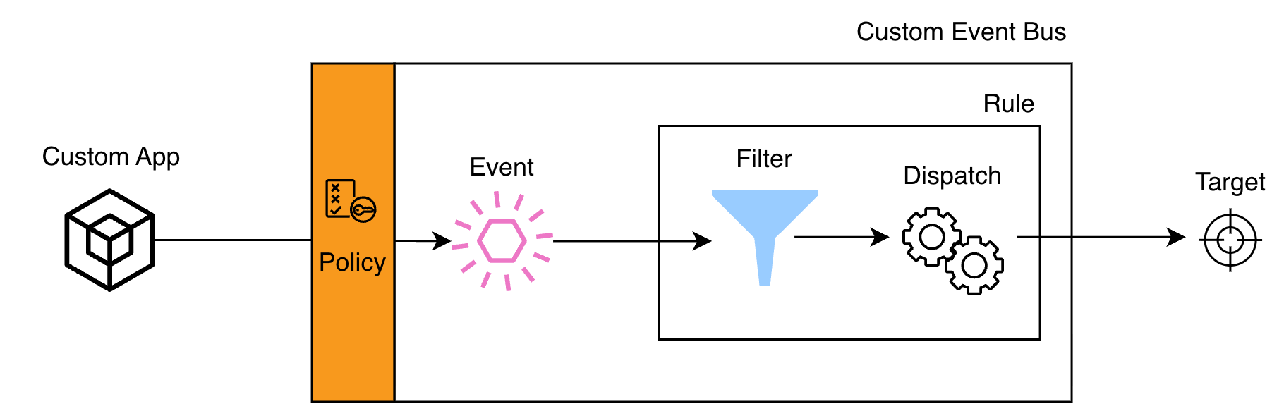 PutEvents API calls or EventBridge Pipes) and deliver them to downstream targets based on your defined rules.EventBridge provides two types of event buses: