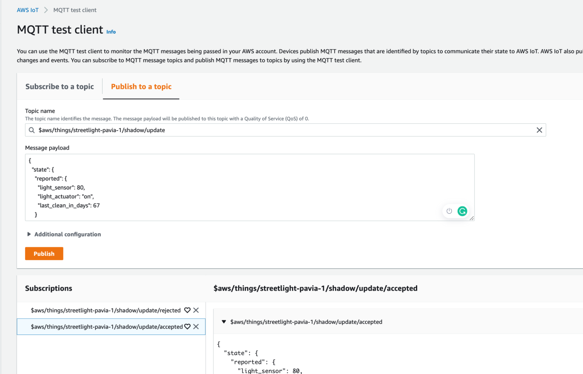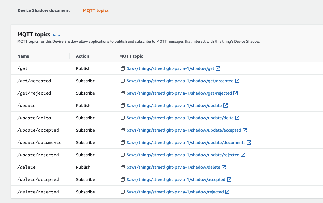 Di default, sono disponibili alcuni topic MQTT tramite qui è possibile gestire lo shadow: