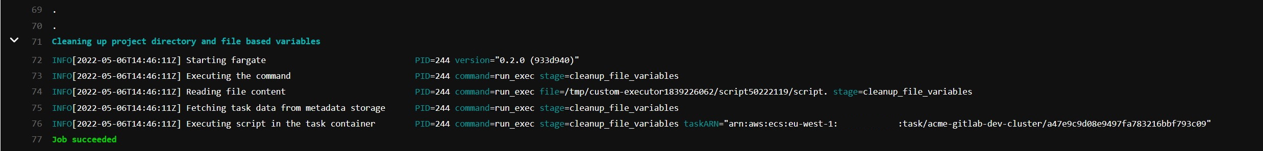 "arn:aws:ecs:eu-west-1:account-id:cluster/acme-gitlab-dev-cluster",
