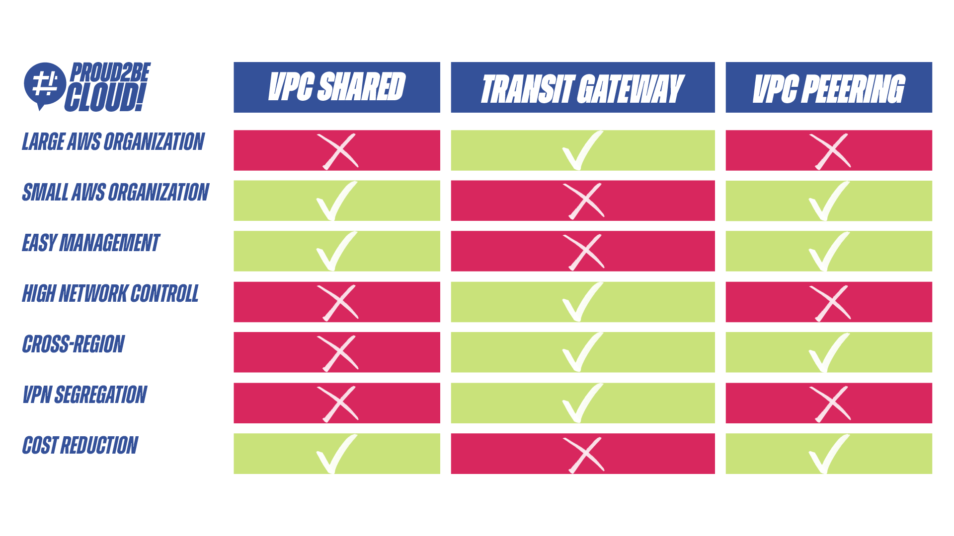 Purtroppo il peering non sarà una soluzine definitiva se intendiamo far creasce la nostra azienda, e di conseguenza la nostra AWS organization, nel arco dei prossimi anni. Il difetto principle di questa soluzione è la sua scalabilità che, con il creascere degli account, perde il suo principio di semplicità e aggiunge moltissimo overhead di gestione.