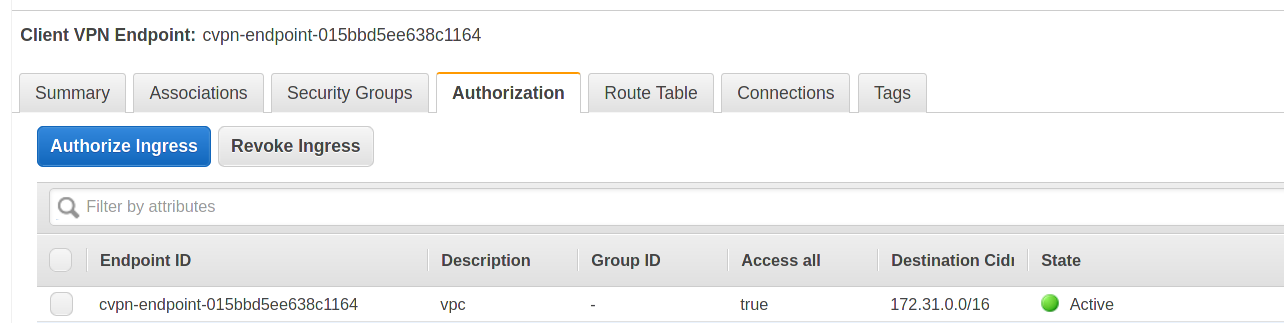 Fare click sul tab “Associations” e autorizzare l’accesso alla rete della VPC: